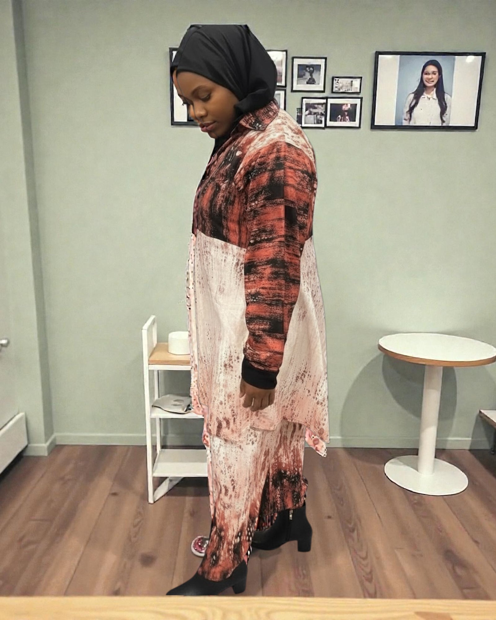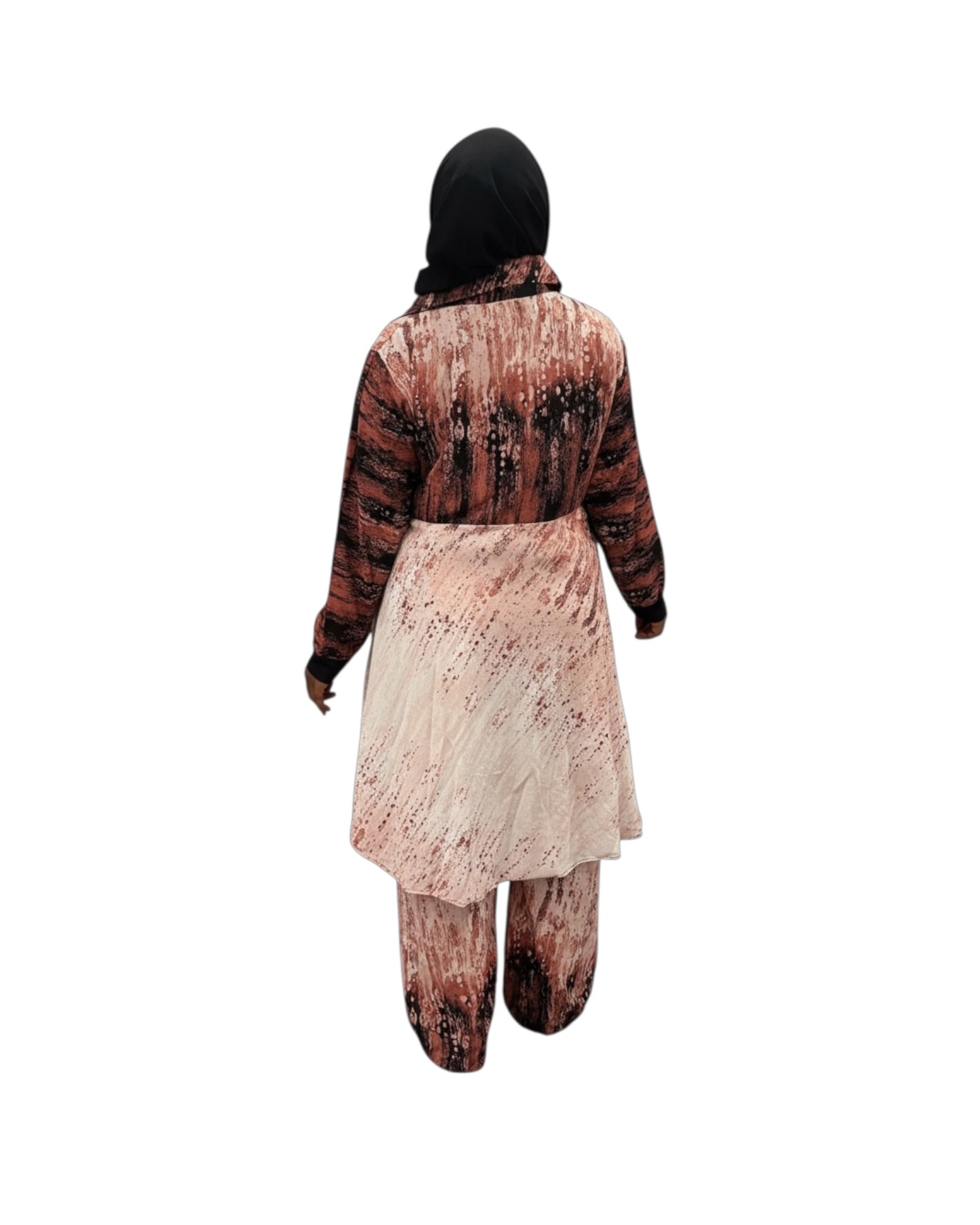 Elevate your modest wardrobe with the Sahara Bloom Luxe Tunic Set — a graceful fusion of artful design and effortless elegance. This full-length tunic and matching pant set features a flowing silhouette adorned with a rich abstract print, blending warm earth tones with soft blush hues for a refined, contemporary look. Designed for comfort and sophistication, it drapes beautifully, making it perfect for both everyday wear and elevated occasions.